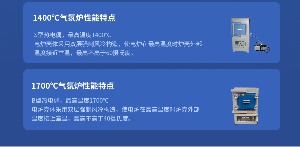 电炉壳体采用双层强制风冷构造,使电炉在**温度时炉壳外部温度接近室温,**不高于40摄氏度。