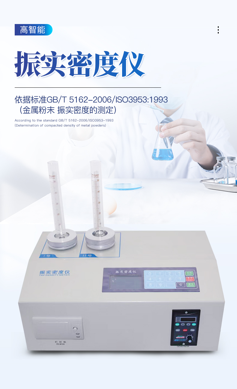 | YT-ZS2型粉体密度测试仪是由丹东市恒瑞仪器有限公司依据标准GB/T 5162-2006/ISO3953:1993(金属粉末 振实密度的测定),并参照美国药典独立研发制造的粉体密度测试仪器,具有自主知识产权。仪器含盖准备GB/T 5162-2006/ISO3953:1993中的各项指标。 | YT-ZS2型粉体密度测试仪由可调速电机、振动组件、微电脑和微型打印机等部件组成。且仪器具有结构紧凑、牢固,操作简单等特点。 |